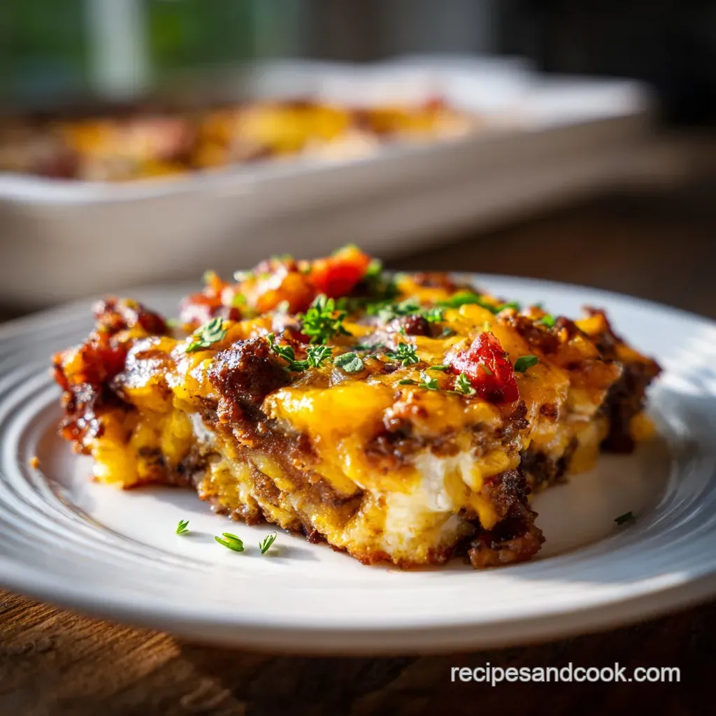 Add 6 strips of crispy, chopped bacon into the beef mixture before baking. The smoky fat pairs beautifully with the sharp cheddar and makes it taste like a true deluxe bacon cheeseburger.