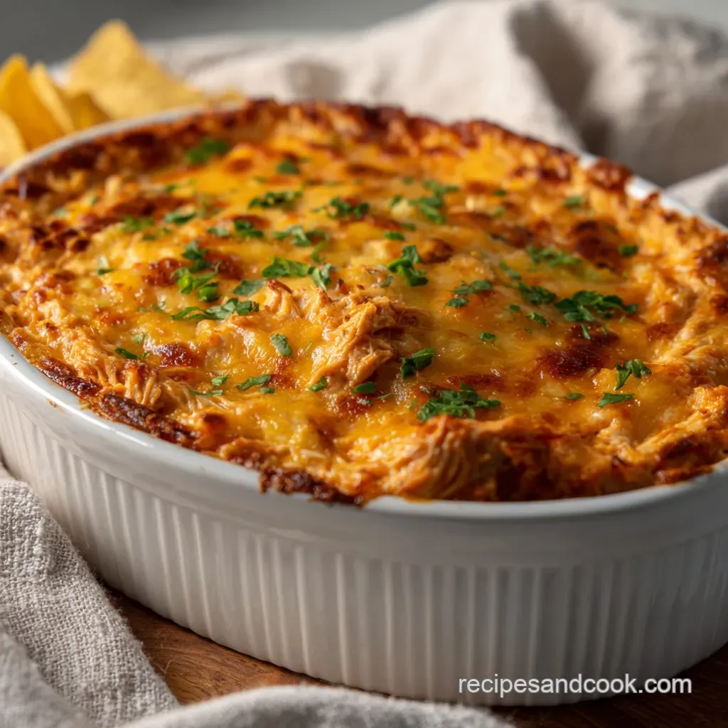 - Rest and Garnish: Remove the pan and let the Buffalo Chicken Dip Oven Baked creation rest for 5 minutes. This allows the internal heat to distribute and the dip to firm up slightly. Garnish with chopped chives or parsley right before you serve it piping hot.